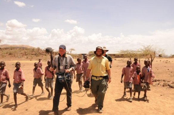 In the slums of Nairobi, Kenya. These are some of the largest slums in the world. Travelling with neighborhood security.